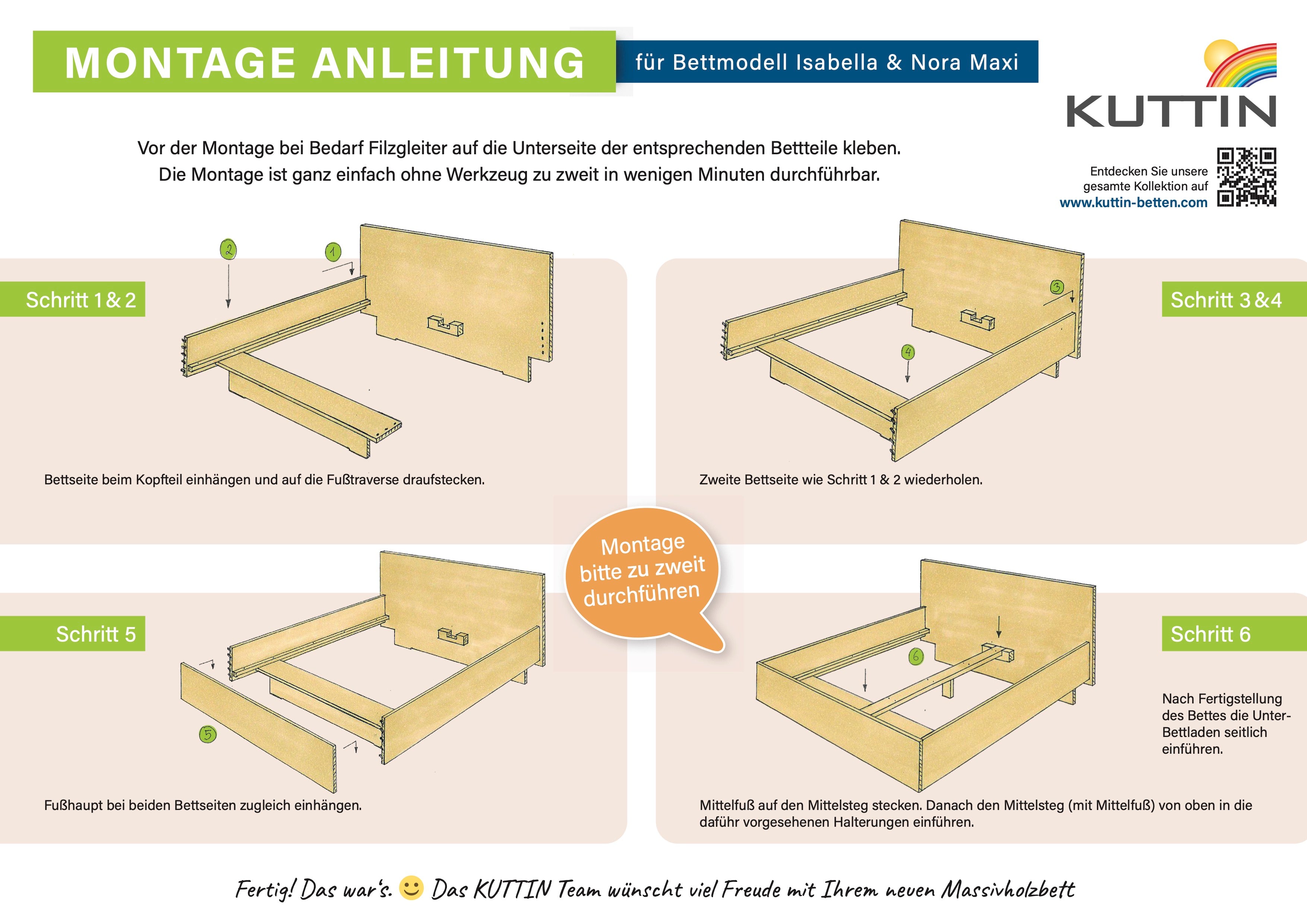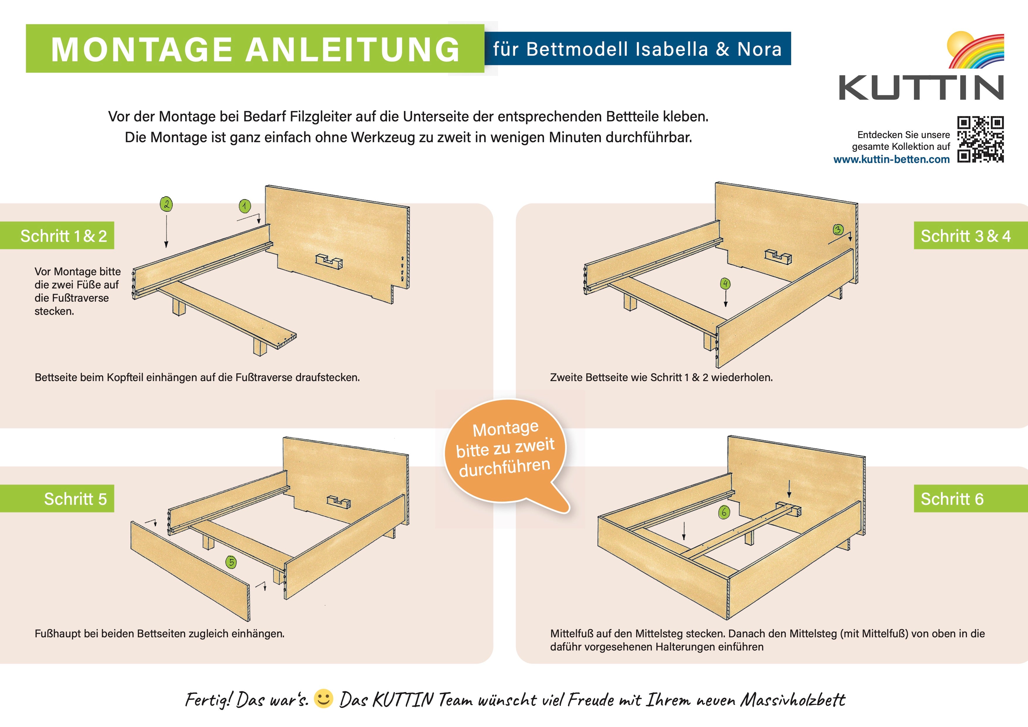 Montageanleitung für Bett Isabella bzw. Bett Nora hier als PDF downloaden.