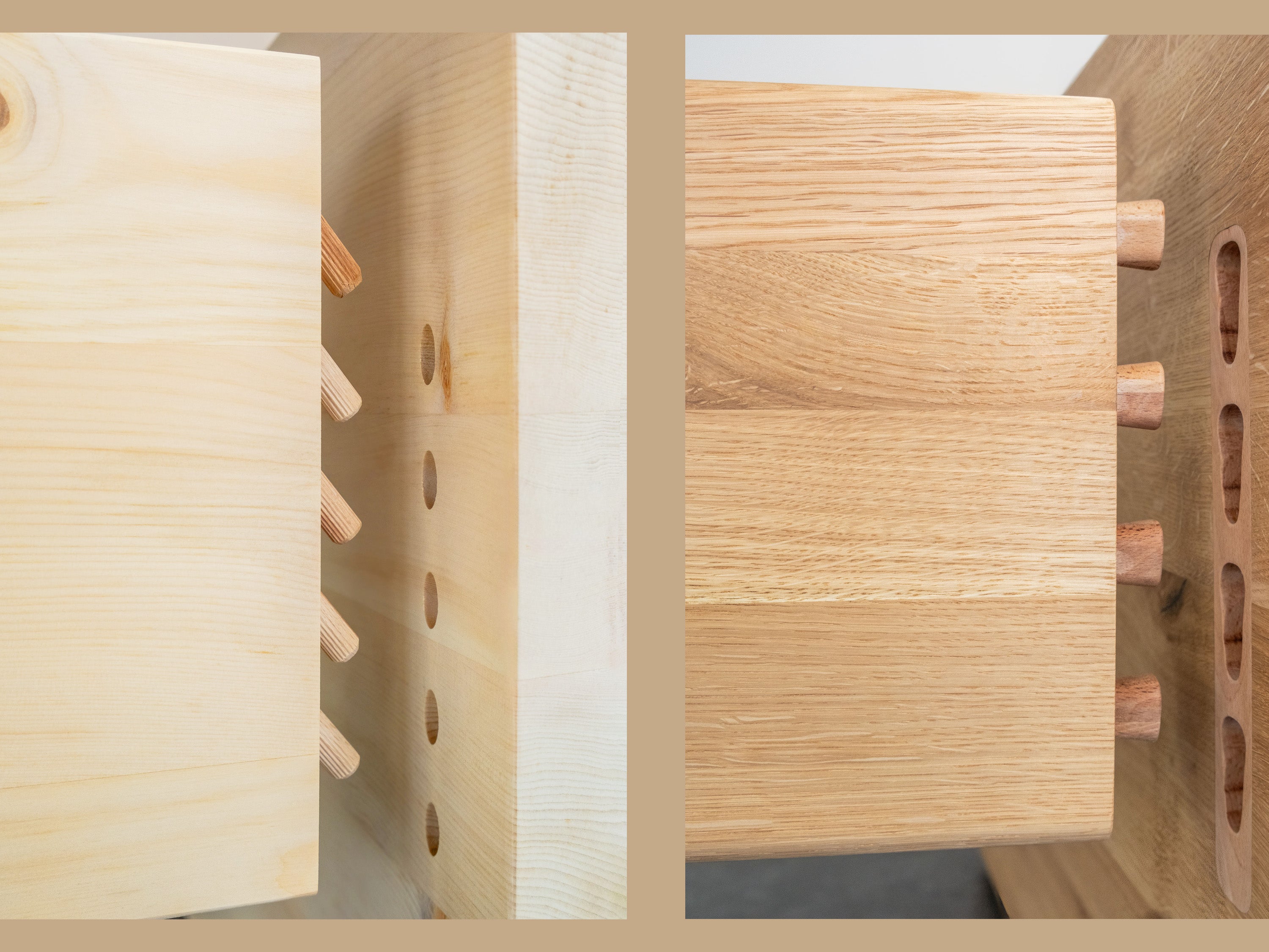 All unsere Betten sind mit einer spezielle entwickelten, metalffreien Hartholz-Steckverbindung ausgestattet. Die doppelkonischen Verbindungselemente (siehe Foto) ermöglichen eine rasche Bettmontage bei maximaler Stabilität und Langlebigkeit.